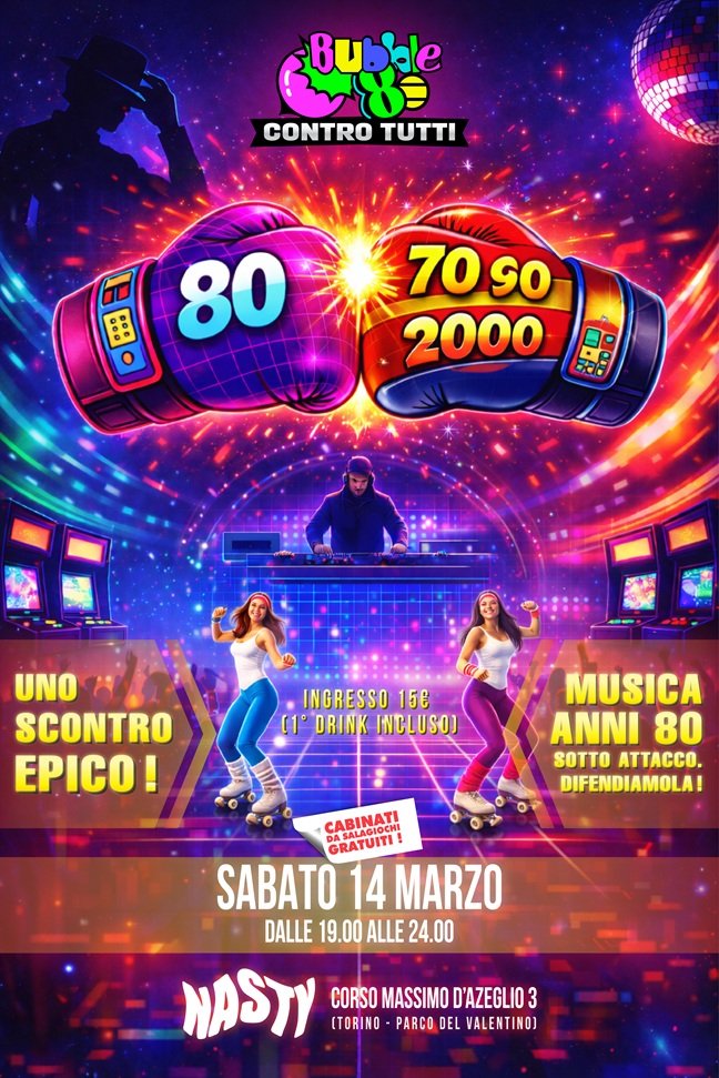 Bubble 80 Contro Tutti, una serata discoteca dove la musica anni 80 è la protagonista assoluta… ma non sarà sola.